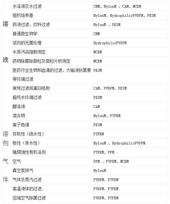 幾種常用濾膜的特性